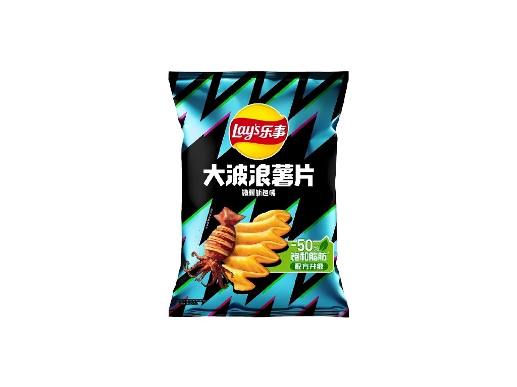 Složení: Brambory, rostlinný olej, kořenicí směs s příchutí grilované olihně (včetně jedlých aromat, zvýrazňovačů chuti (E951, obsahuje fenylalanin)), antioxidanty (E319).