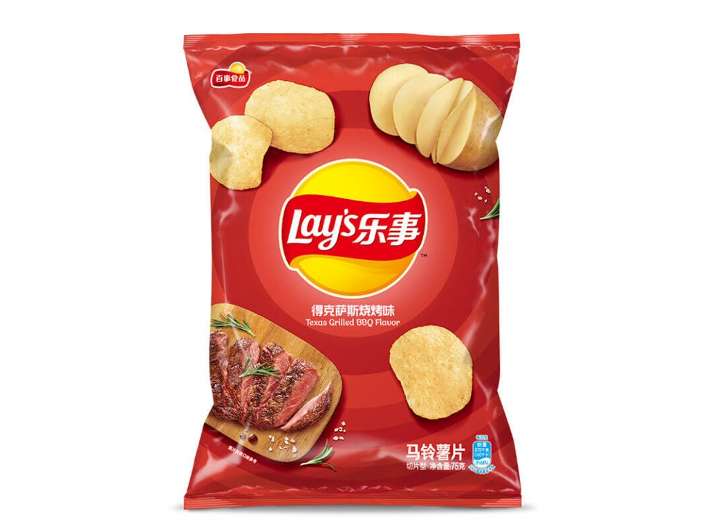 Lay's China přináší exkluzivní bramborové lupínky s příchutí Texas Grilled BBQ. Vše začíná bramborami vypěstovanými na farmě, které jsou uvařené a dokonale ochucené. Poté se přidá pikantní sladkost BBQ omáčky. Každý bramborový lupínek LAY'S je tak dokonale křupavý a lahodný. Štěstí v každém soustu.