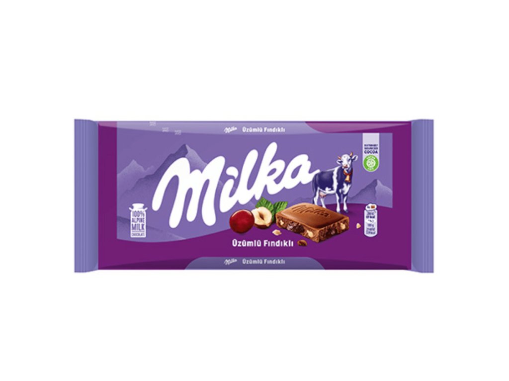 Mléčná čokoláda Milka s rozinkami a ořechy