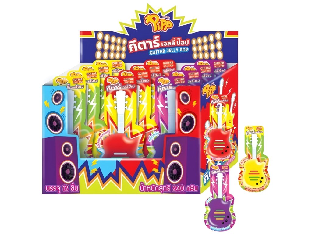 Složení: Sladový sirup 50,58%, cukr 34,12%, voda 10,16%, koncentrovaná jablečná šťáva 2,11%, potravinářské přísady (E296, E330, E331, E407, E440), umělá barviva (E102, E129, E133), přírodně identické aroma.