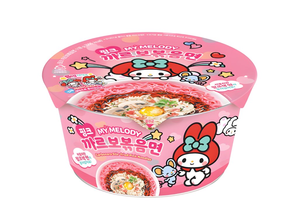 Ingredients: Wheat flour, pink carbonara stir-fry sauce [high fructose syrup, chicken extract (chicken bones), starch syrup, sugar, refined salt], palm oil, modified starch, carbonara powder (butter mixed powder, sugar, butter, dextrin, refined salt, modified starch, refined salt), chicken extract, egg white powder, noodle alkaline additives (acidity regulators (E501(i), E500(i)), E339(ii)), mixed preparation [colour (E120), dextrin, emulsifier (E339, E452, E339(i), E450), humectant (E422), antioxidant (E307)], edible oil processed products, sauce, yeast extract, soybean oil, emulsifier (E475), water), antioxidant (E307), acidity regulator (E330), dried napa cabbage, sliced carrot.