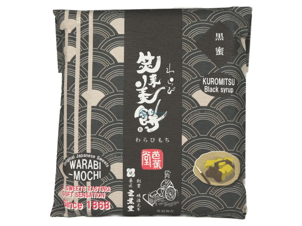 Složení: Warabi mochi (cukr, oligosacharidy, škrob, kapradinová škrobová knedlíková mouka, modifikovaný škrob), hnědá melasa (hnědý cukr, bílý cukr, škrobový cukr).