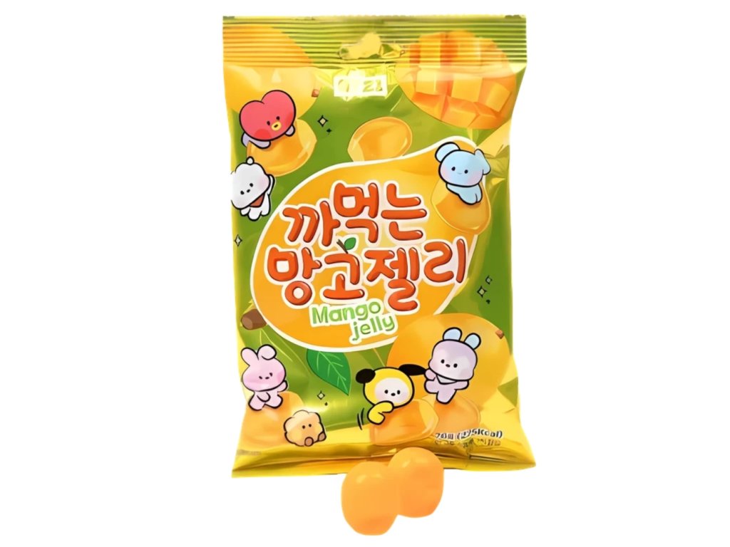 Složení: Sladový sirup, cukr, koncentrát šťávy z manga (7 %, sušina 40 %), želírující látky (pektin, karagenan), regulátory kyselosti (kyselina citronová, kyselina DL-jablečná), aroma, barviva (Sunset Yellow FCF (E110), tartrazin (E102)).