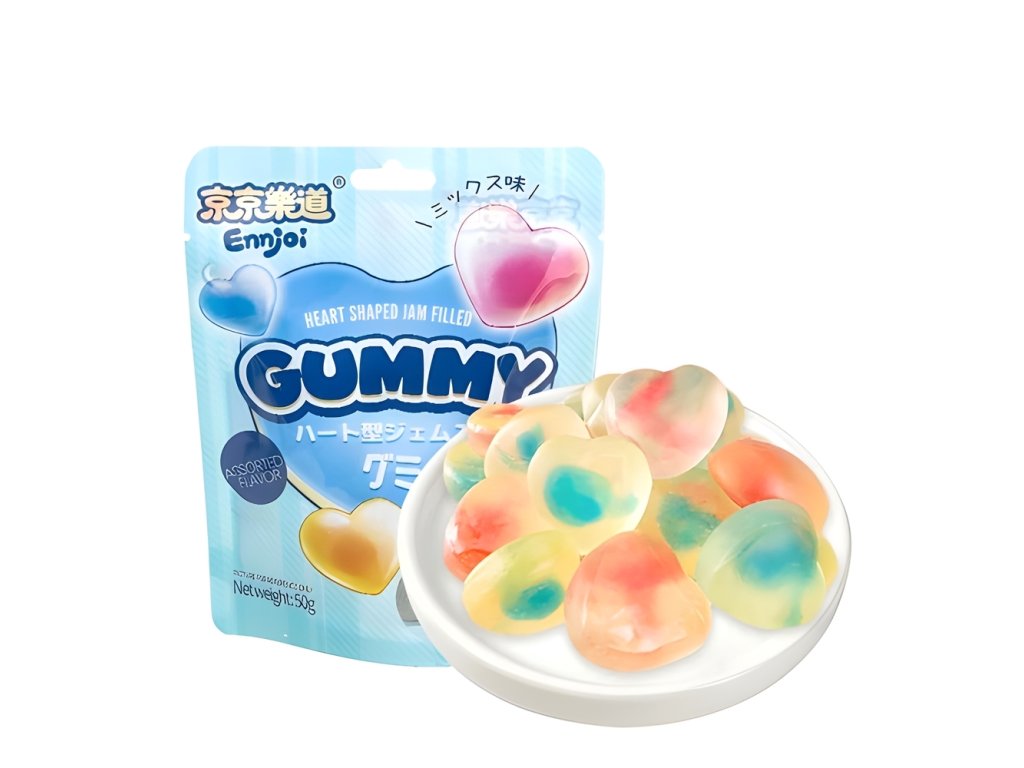 Ennjoi Assorted Fruit Heart Shaped Jam Filled Gummy 50g CHN