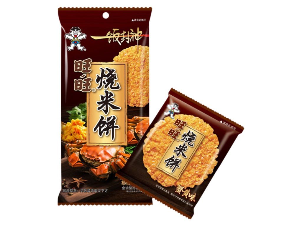 Ingredients: rice (≥ 40%), vegetable oil (contains antioxidant (E319)), sugar, rice flour, salted egg yolk flavouring compound (colorant (E160c), acidity regulator (E262(ii))), starch, soy sauce, spicy crab & egg yolk flavouring compound (colorant (E160c), sweetener (E951-contains phenylalanine)), maltodextrin, food additives (thickener (E1440), colorant (E160c), soy lecithin, flavour enhancer (E635)), flavouring, flavour enhancer (E621), black vinegar flavouring compound, salt.