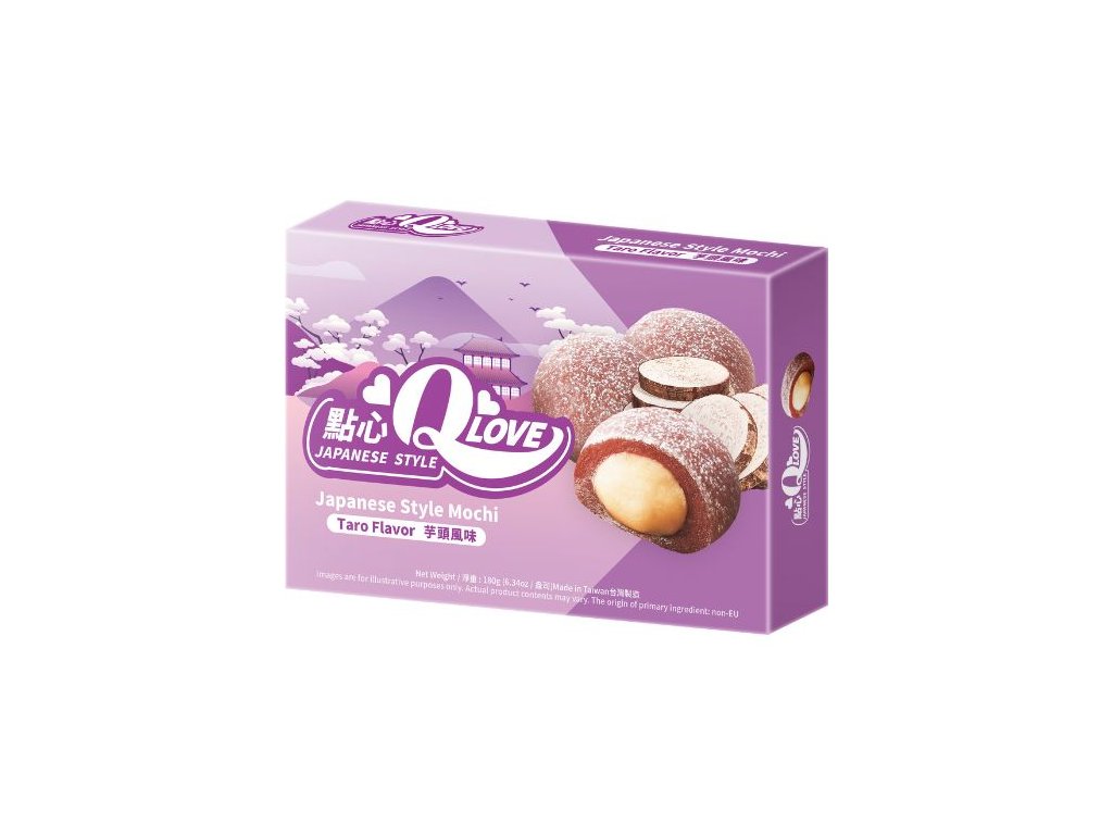 Složení: Maltóza, pasta z taro (bílé ledvinové fazole, maltóza, cukr, sójový olej, sůl, umělé aroma, prášek z taro, konzervant (potassium sorbate (E202))), lepkavá mouka, cukr, voda, taro a lepkavá mouka, bramborový škrob, konzervant (potassium sorbate (E202)), glyceriové estery mastných kyselin (E471), xanthanová guma (E415)).