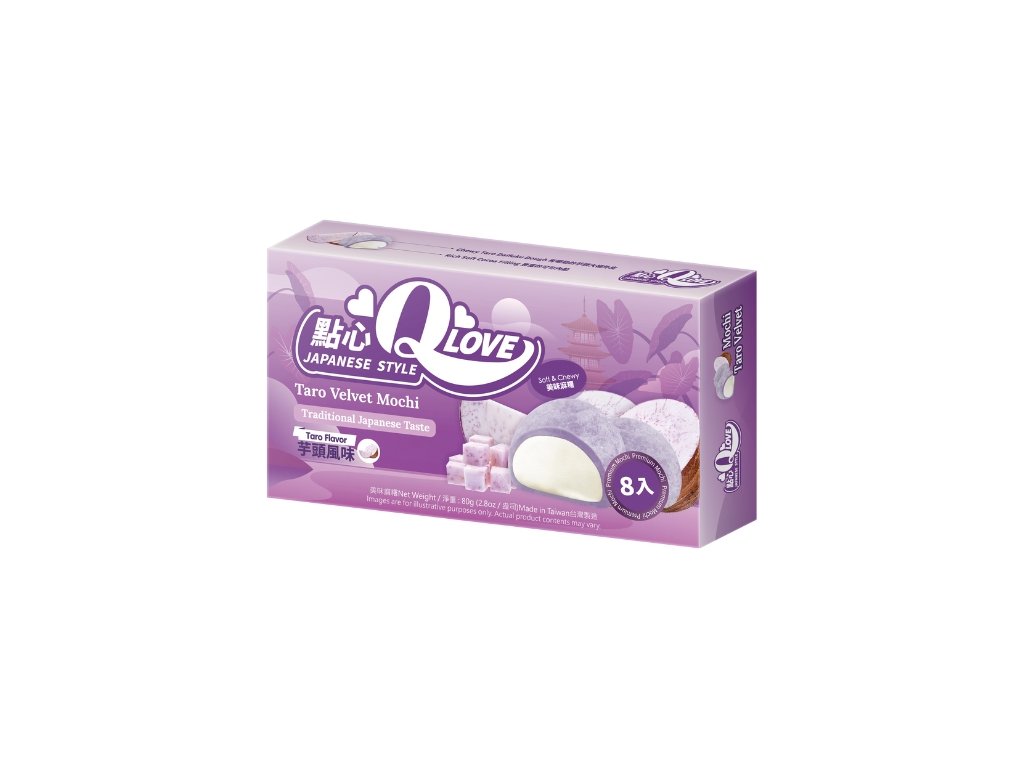 Složení: Maltóza, náplň s příchutí bílé čokolády [palmový olej, cukr, sušená syrovátka, sušené mléko, maltodextrin, kakaové máslo, emulgátor (sójový lecitin), aroma], cukr, lepkavá rýžová mouka 26 %, pitná voda, plně ztužený kokosový olej, sójový olej, bramborový škrob, taro aroma, konzervant (sorban draselný), aroma, mono- a diglyceridy mastných kyselin, zahušťovadlo (xanthan), barviva (E129, E133).