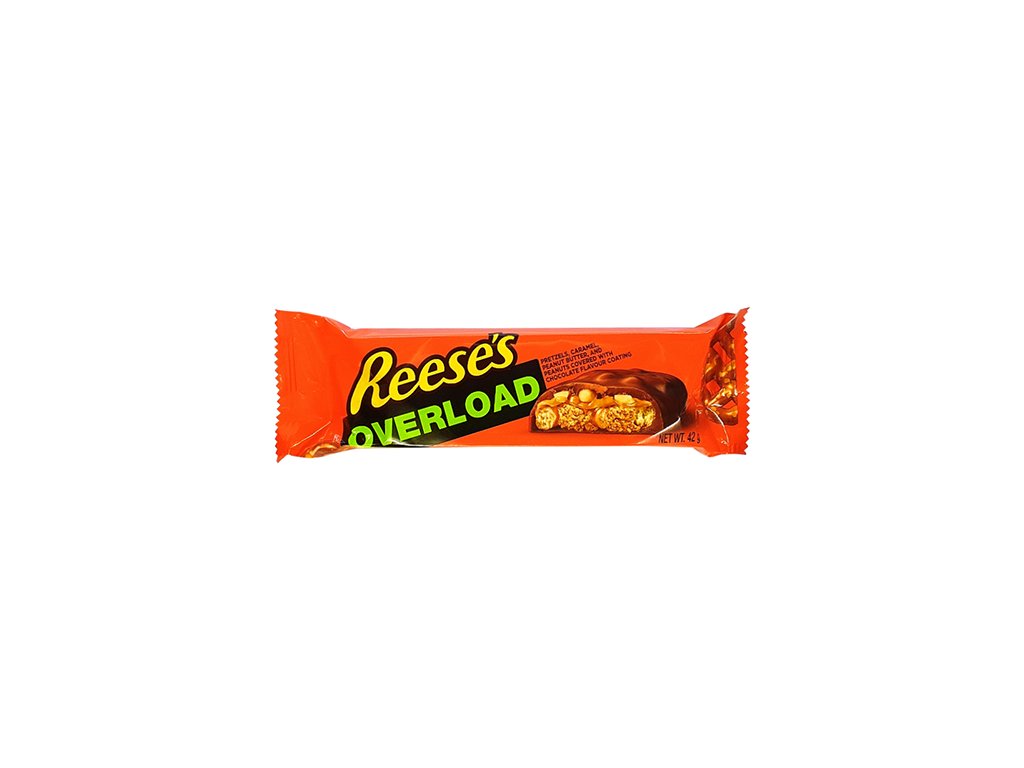 (EN) Crispy Reese’s bar with pretzels, caramel and peanut butter in chocolate coating