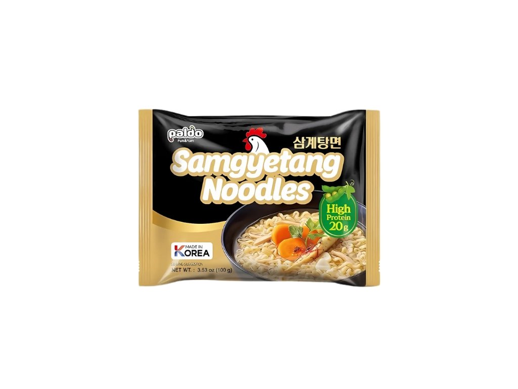 Složení: Nudle: Obohacená pšeničná mouka, palmový olej, hrachový protein, pšeničný lepek, bramborový škrob, modifikovaný škrob (bramborový, tapiokový), jedlá sůl, emulgovaný olej [slunečnicový olej, lecitin (sója) (E322, emulgátor)], rostlinný extrakt (česnek, cibule), cibulový extrakt, alkalizující látky (uhličitan draselný (E501), uhličitan sodný (E500), fosforečnan sodný (E339)), guma guar (E412, zahušťovadlo), řepkový olej, riboflavin (E101, barvivo), propylenglykolalginát (E405, zahušťovadlo/stabilizátor). / Základ polévky: Umělé kuřecí aroma v prášku, umělé aroma kuřecího vývaru v prášku, jedlá sůl, sójová omáčka v prášku (sója, pšenice, jedlá sůl, bonito), cukr, prášek z černého pepře, maltodextrin (plnidlo), bezvodá dextróza, zvýrazňovače chuti (inosinan disodný (E631), guanylát disodný (E627)), fosforečnan vápenatý (E341, protispékavá látka), xanthanová guma (E415, zahušťovadlo), koření z červené papriky, česnekový aromatizovaný olej, umělé ženšenové aroma v prášku. / Vločky: Umělé kuřecí aroma vločky (sója), sušená mrkev, sušené bok choy.