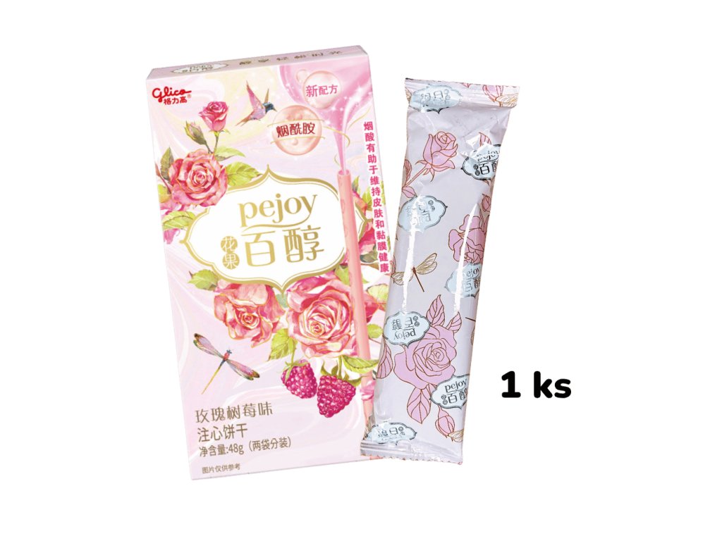 Složení: pšeničná mouka, cukr, sušené plnotučné mléko, rostlinný tuk, malinový prášek (2 %), tekutý sladový extrakt (voda, ječmen, slad), kypřící látka (E500), emulgátor (E322 sójový lecitin, E473), regulátor kyselosti (E296) , Barvivo (E160a), Sůl, liči prášek, růžový instantní růžový prášek (růže) (2 %).