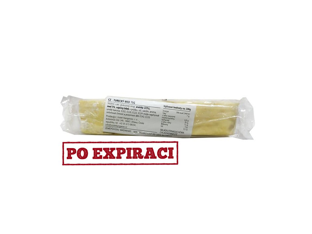 Složení: cukr, glukózový sirup, arašídy, med, vaječný bílek v prášku, sůl, vanilin, aroma, umělé barvivo: E102, E110, E122, E124